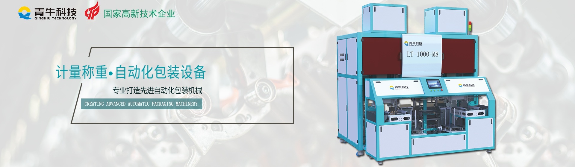 因?yàn)閷Wⅲ詫I(yè),漳州青牛科技有限公司將專注包裝領(lǐng)域、創(chuàng)造包裝精品、不斷致力于智能化包裝設(shè)備的研發(fā)制造,以更智能、高能、可靠的產(chǎn)品來滿足日新月異的市場需求。力爭成為國內(nèi)包裝自動化技術(shù)的領(lǐng)頭者,為我國包裝自動化事業(yè)添磚加瓦。